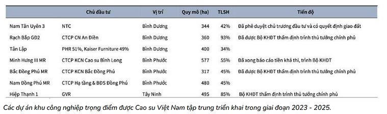 Ngày 1/3/2024, GVR chính thức được xác nhận là chủ đầu tư KCN Hiệp Thạnh GĐ1 có diện tích 495 ha, tổng mức đầu tư 2.350 tỷ đồng, toàn bộ phần diện tích này nằm trong Nông trường Cao su Gò Dầu thuộc quản lý của TRC.