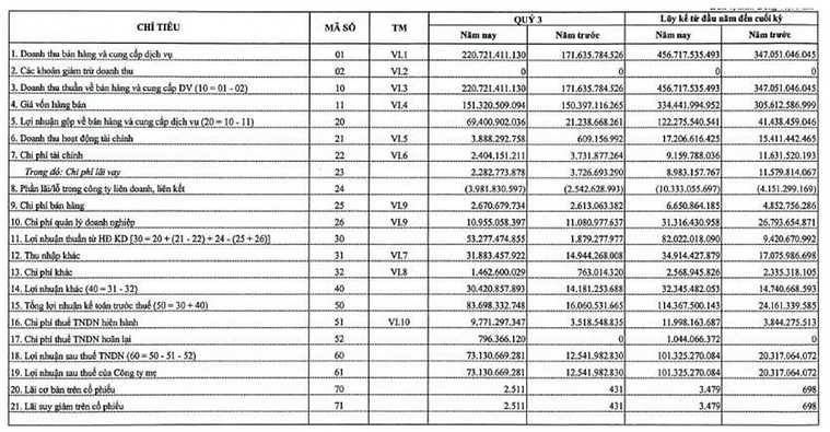 KẾT QUẢ KINH DOANH QUÝ 3 RỰC SÁNG CAO SU